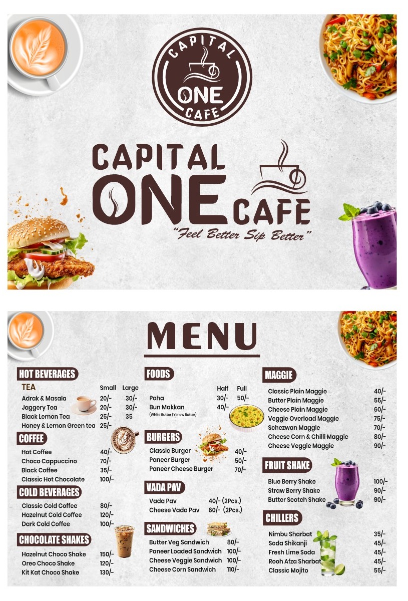 Welcome to Capital One Cafe, a delightful spot nestled in the heart of Aliganj, Lucknow. This café offers a menu that masterfully balances traditional favorites with refreshing beverages, creating a warm and inviting atmosphere for diners.